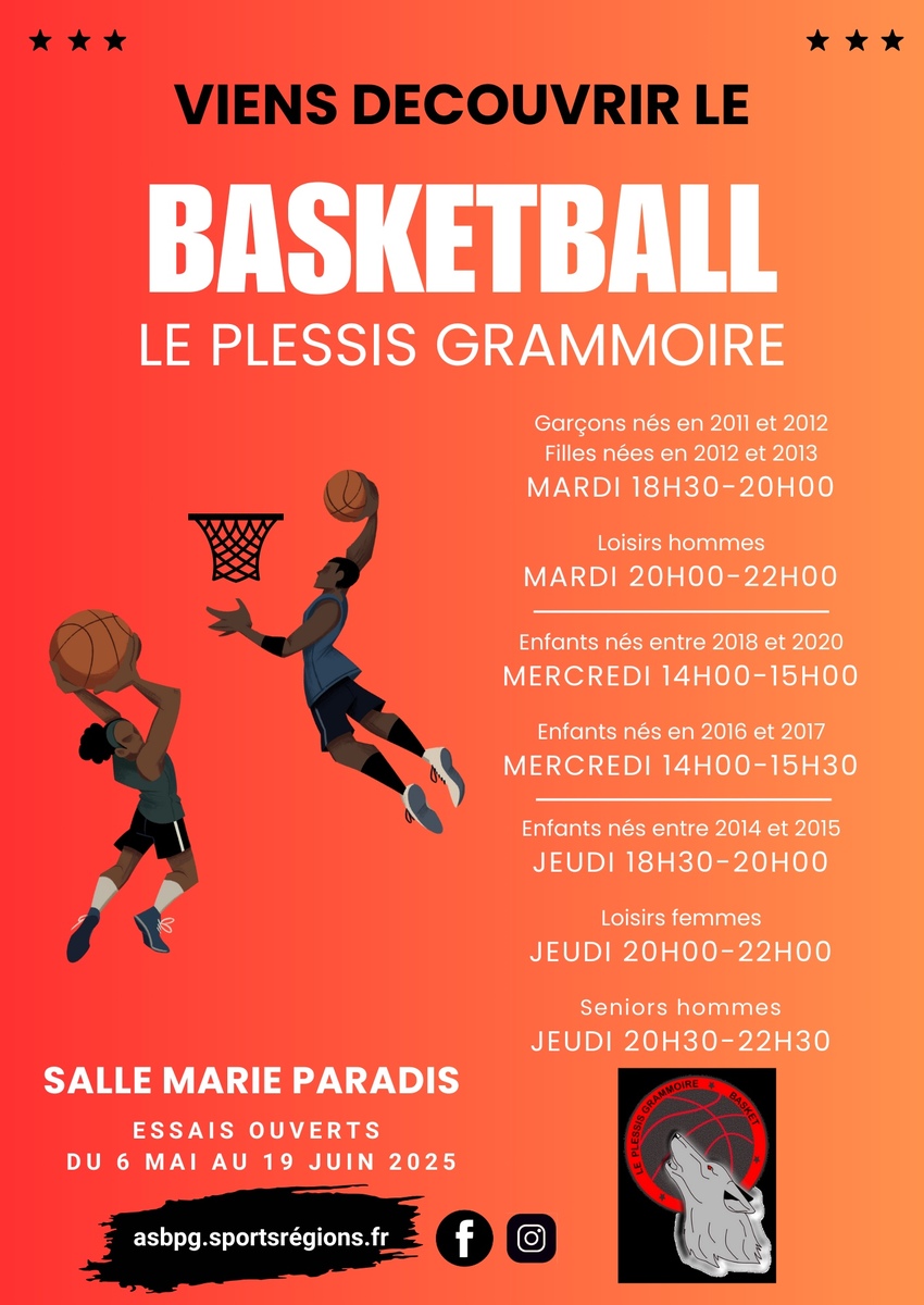 N'hésitez pas à prendre contact via l'adresse mail du club : plessisbasket@gmail.com ou par téléphone 0612453816.